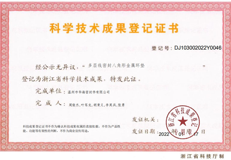 溫州市企業(yè)技術(shù)研究開發(fā)中心 浙江省科學(xué)技術(shù)成果登記證書